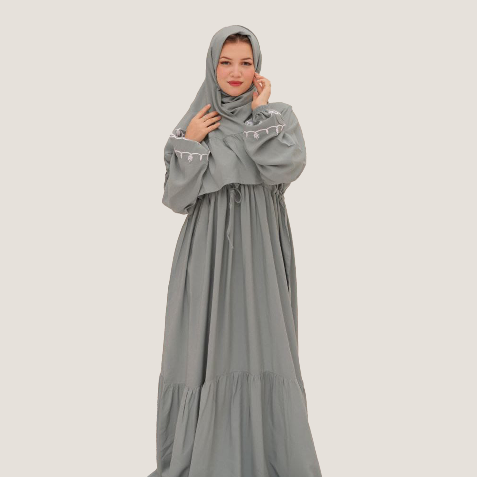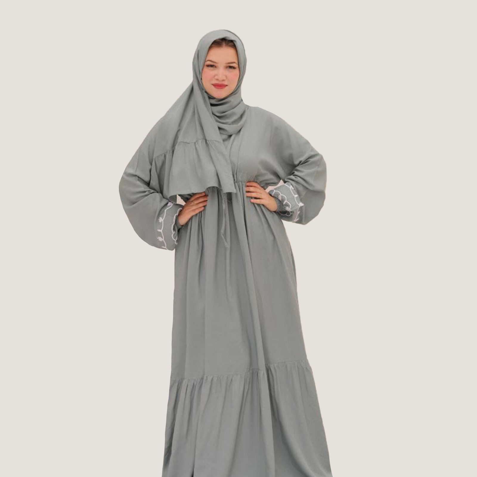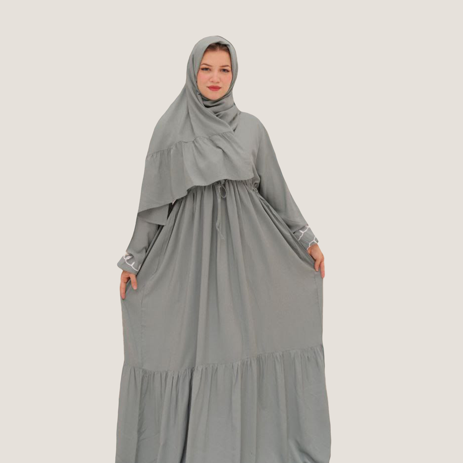 إسدال أنيق وعصري بخامة فسكوز قطن مريحة جدًا على البشرة، خفيف وناعم ومناسب للاستخدام اليومي الصلاة و الاستقبال. تصميمه نظام دريس مع طرحة متصلة لسهولة اللبس وحرية الحركة، قصّة واسعة توفر أقصى درجات الراحة والاحتشام. اختيار مثالي لكل اللي بتدور على الأناقة العملية والراحة في نفس الوقت.