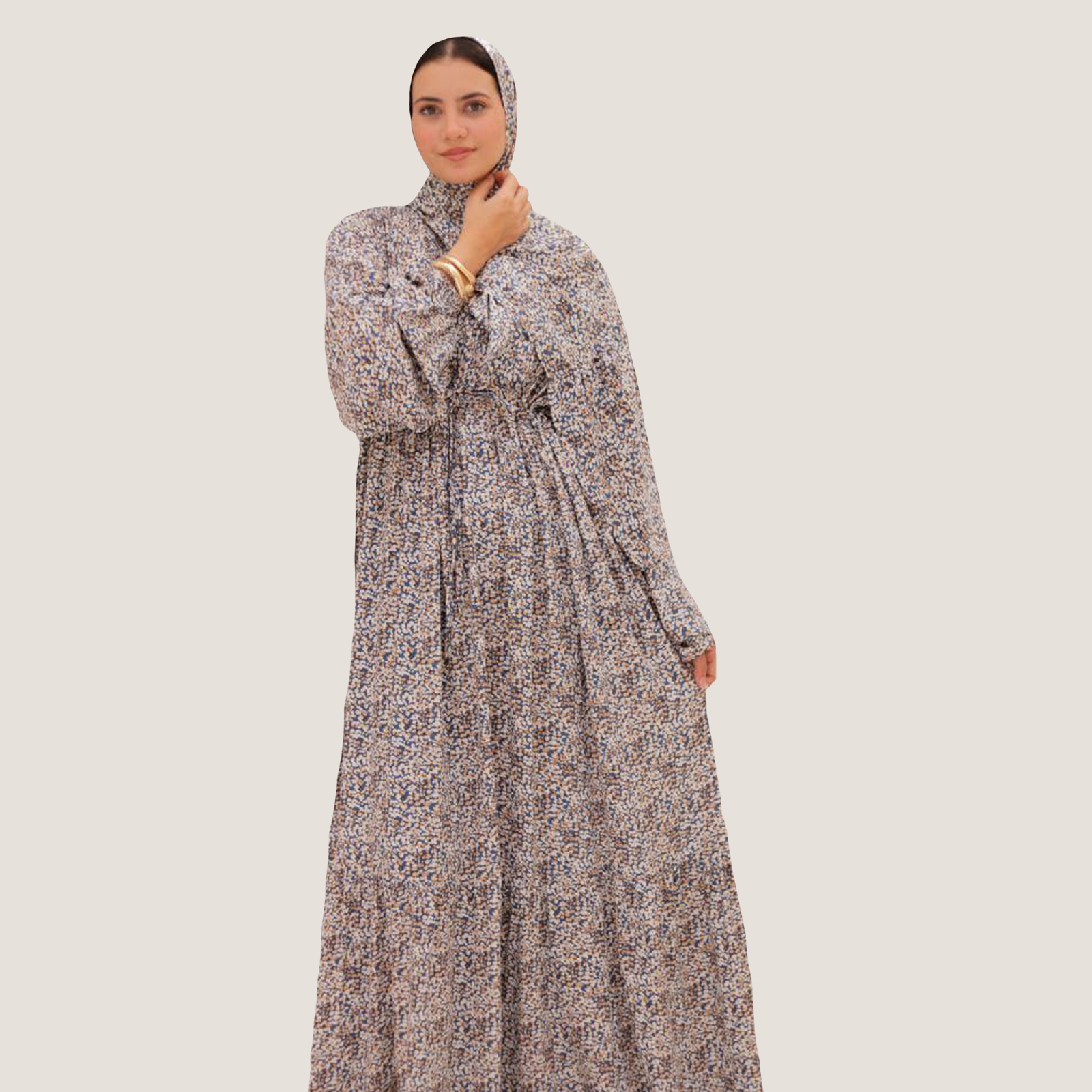 إسدال أنيق وعصري بخامة فسكوز قطن مريحة جدًا على البشرة، خفيف وناعم ومناسب للاستخدام اليومي الصلاة و الاستقبال. تصميمه نظام دريس مع طرحة متصلة لسهولة اللبس وحرية الحركة، قصّة واسعة توفر أقصى درجات الراحة والاحتشام. اختيار مثالي لكل اللي بتدور على الأناقة العملية والراحة في نفس الوقت.