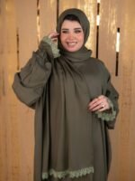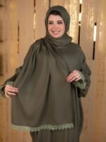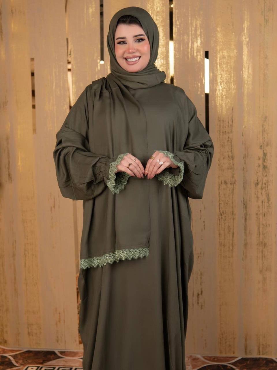 إسدال أنيق بلون منت داكن مصنوع من قماش ناعم وخفيف يمنحك راحة طوال اليوم. يتميز بتصميم واسع مع أكمام مزينة بلمسات دانتيل رقيقة على الأطراف، مما يضفي لمسة أنثوية راقية. مثالي للصلاة أو الخروج بإطلالة محتشمة وعصرية في آن واحد.
