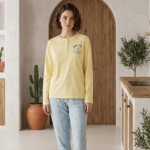 بيجاما خريفي كم قطن عملي ومريح، مناسبة للبيت وللنوم براحة طول اليوم. الخامة قطن 100% بجودة عالية، ناعمة على البشرة وبتدي إحساس بالراحة والتهوية، وده بيخليها اختيار مثالي لأيام الخريف