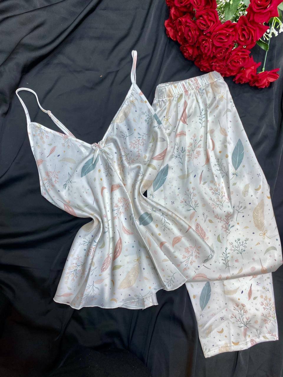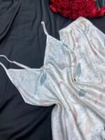 موديل أنيق بخامة ستان ناعمة تعطي لمسة فخامة وأنوثة مميزة. التصميم مريح وخفيف في اللبس ومناسب للبيت و الاجواء الصيفيه، مع إحساس بالنعومة والراحة على البشرة.