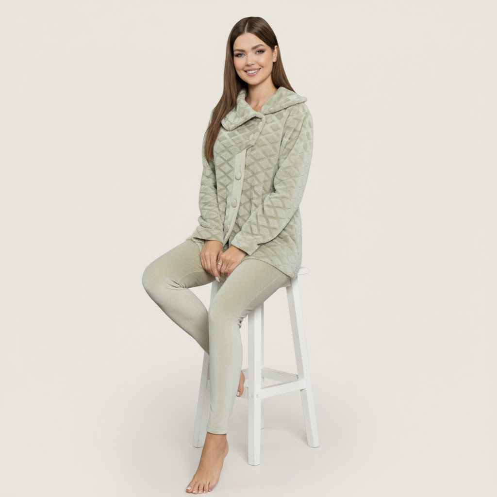.استمتعي بإحساس دفا وراحة طول اليوم مع بيجامة بولار ناعمة بخامة مريحة وملمس دافي يخليها مثالية لأيام الشتاء الباردة
