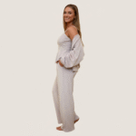طقم شتوي عملي وأنيق مكوّن من توب، بنطلون، وجاكت بخامة قطيفة مبطنة بتدفي وتوفر إحساس راحة طول اليوم