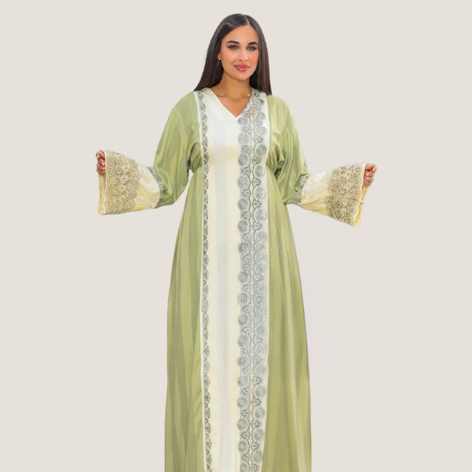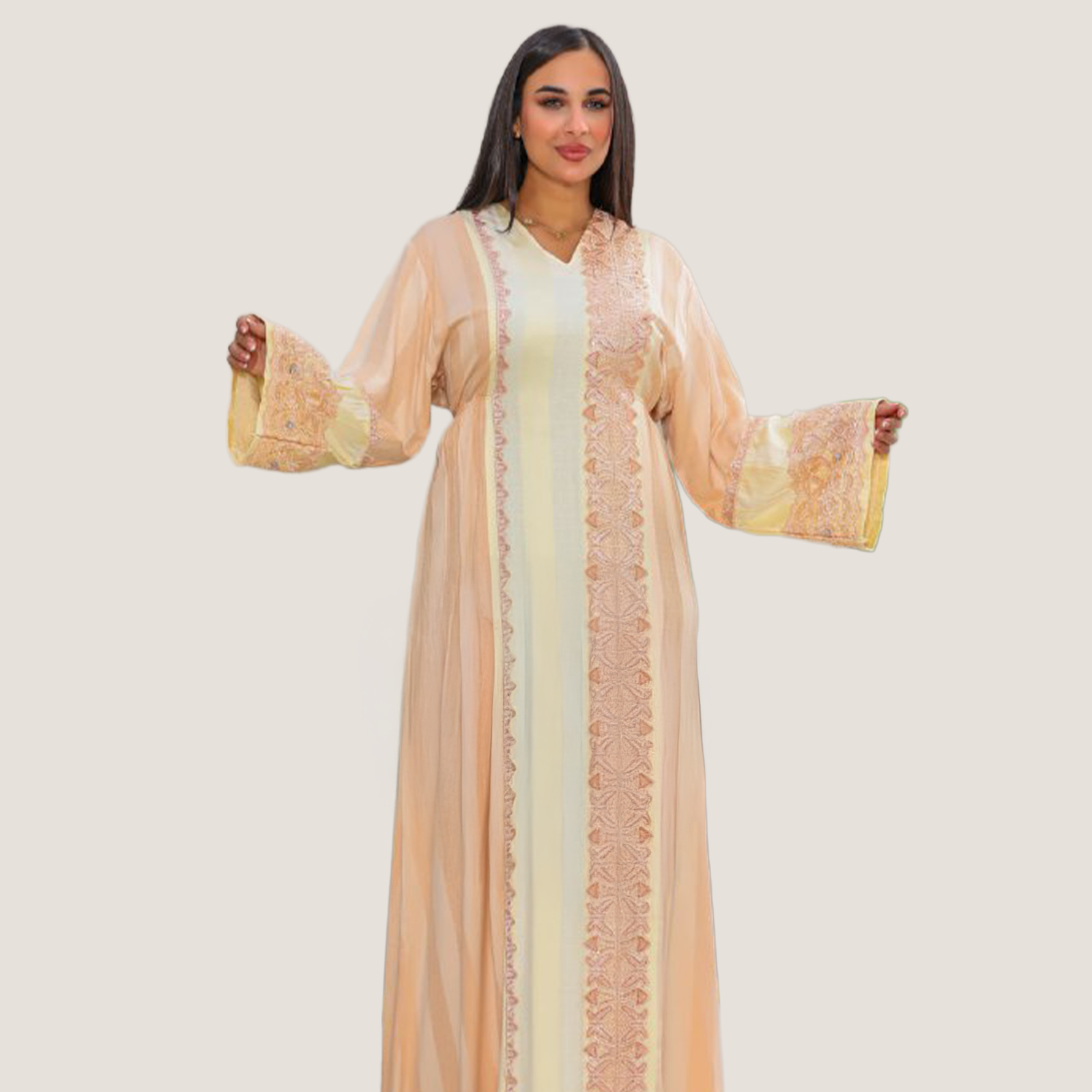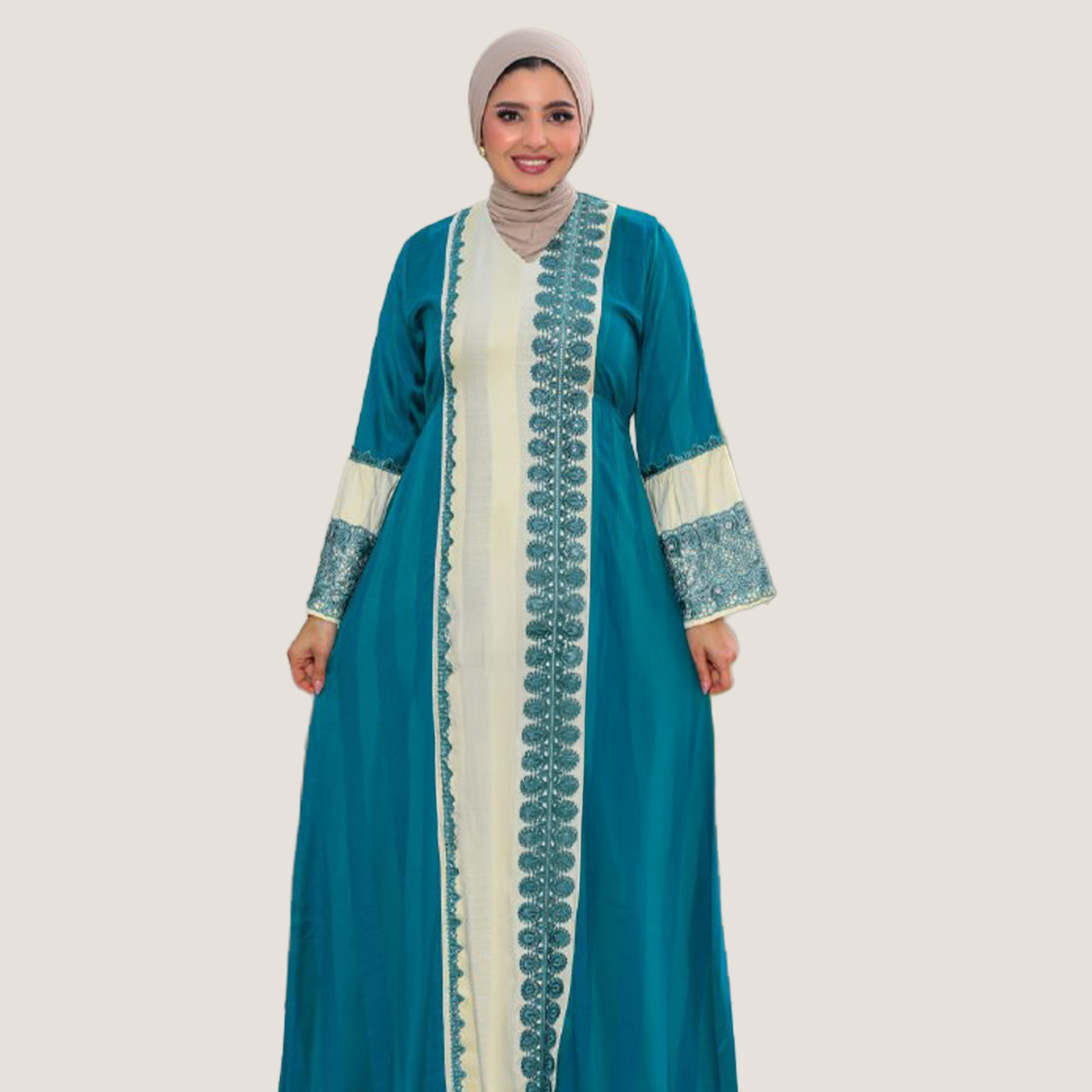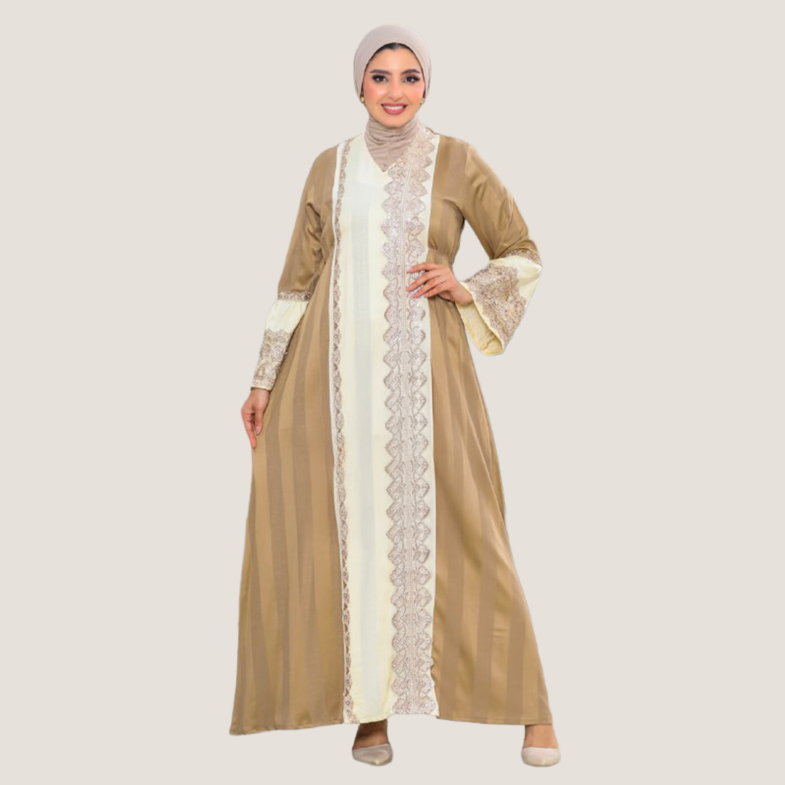 عباية أنيقة بتصميم يجمع بين البساطة والفخامة، مناسبة لإطلالة راقية في مختلف المناسبات اليومية والخاصة.