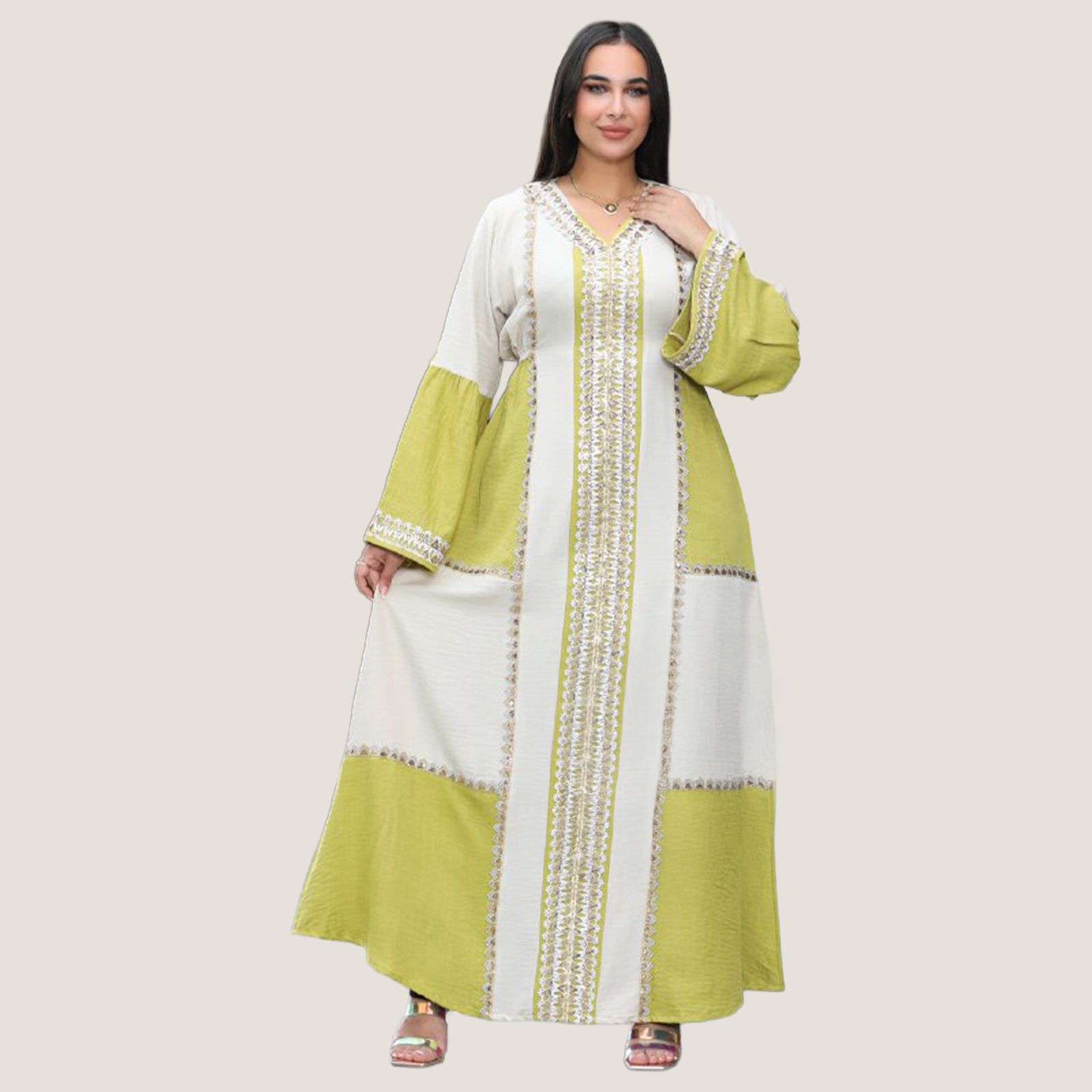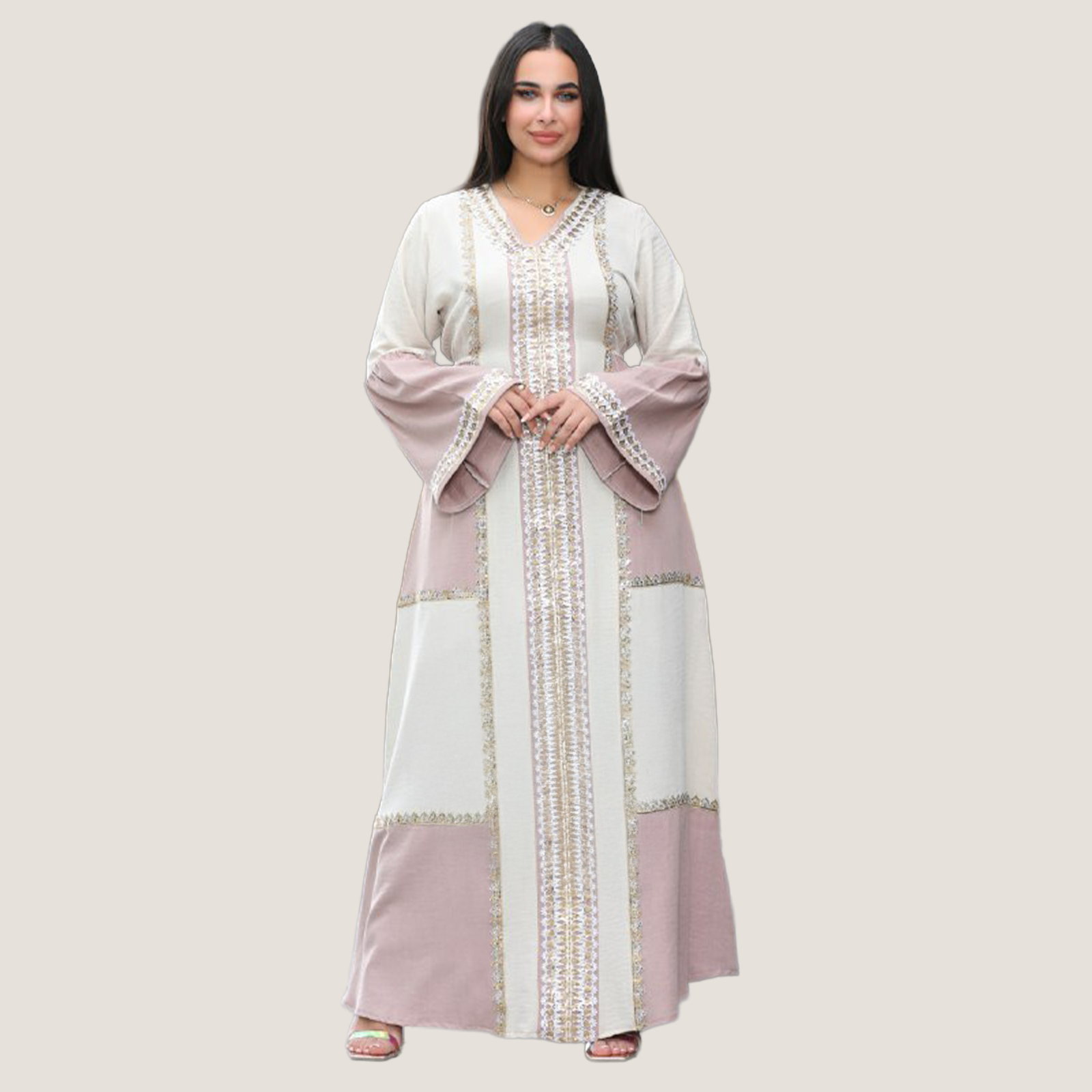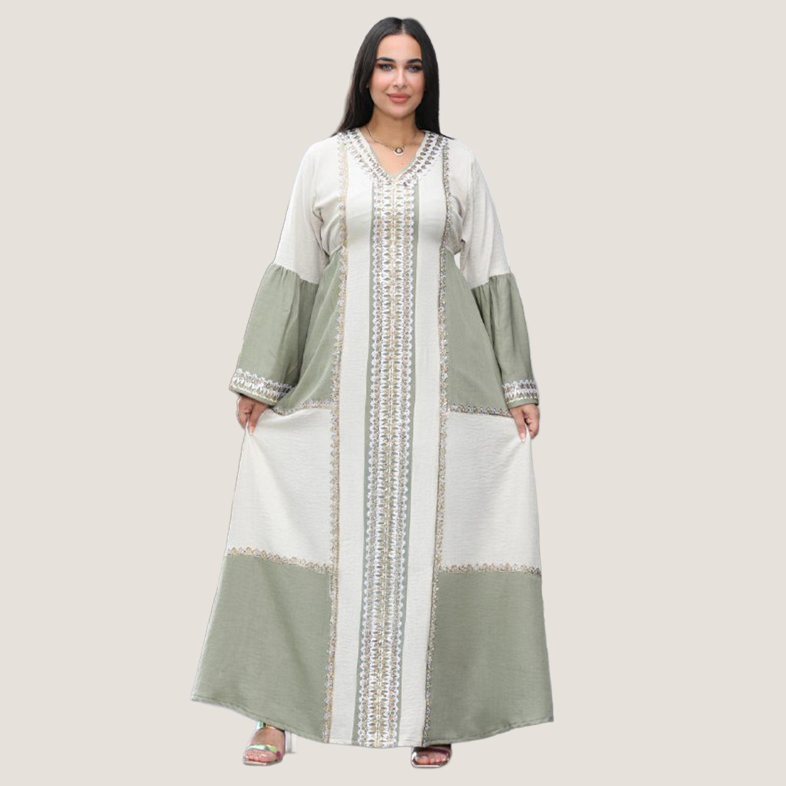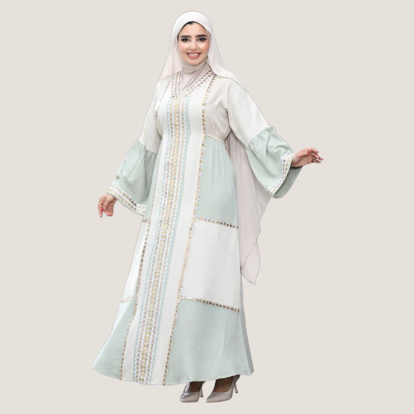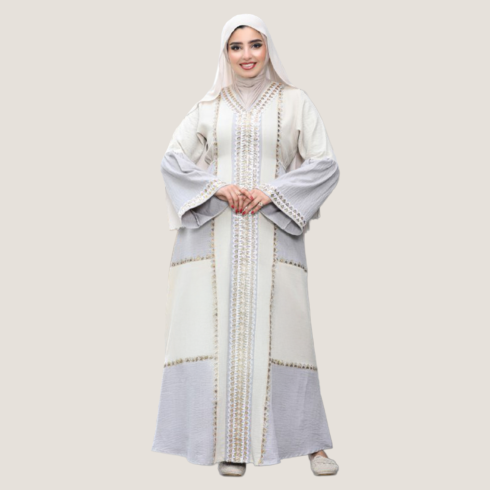 عباية نسائية بخامة بلانكا قطن 100%، تصميمها أنيق ومريح مناسب للخروجات واللبس اليومي. الخامة قطن طبيعي ناعم على الجسم وبتدي إحساس بالراحة والتهوية طول اليوم، مع شكل شيك يبرز جمال الموديل.
