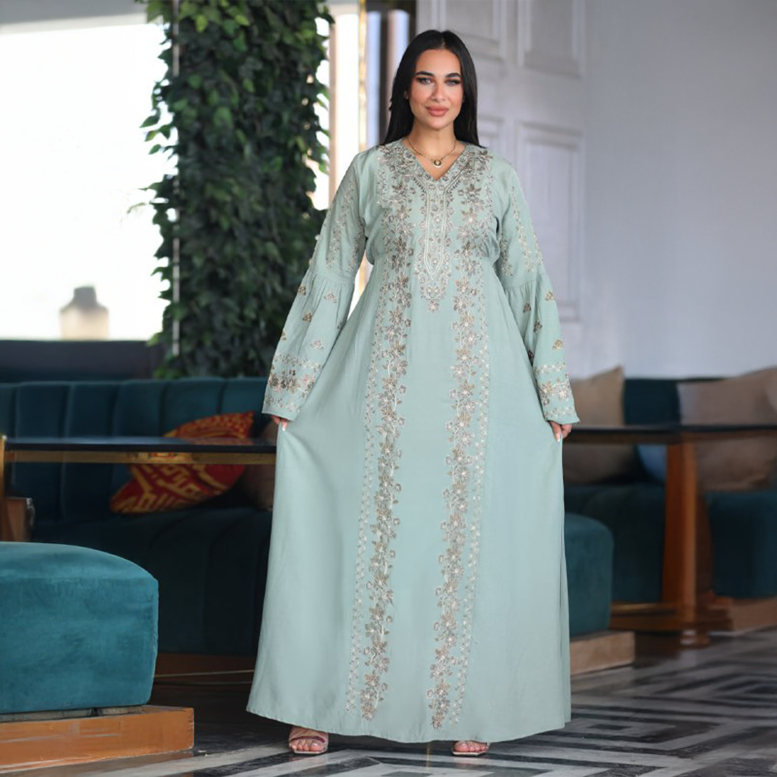 عباية نسائية بخامة كتان قطن مستورد، تصميمها شيك ومريح مناسب للخروجات واللبس اليومي. الخامة ناعمة وخفيفة على الجسم وبتدي إحساس بالراحة طول اليوم، مع شكل أنيق يبرز جمال الموديل.