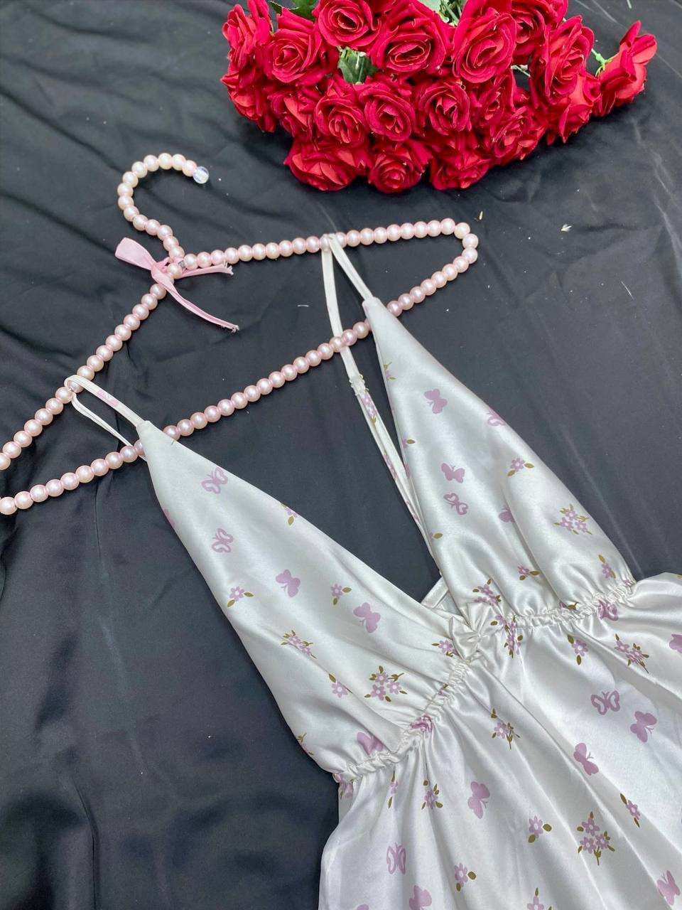 موديل أنيق بخامة ستان ناعمة تعطي لمسة فخامة وأنوثة مميزة. التصميم مريح وخفيف في اللبس ومناسب للبيت و الاجواء الصيفيه، مع إحساس بالنعومة والراحة على البشرة.