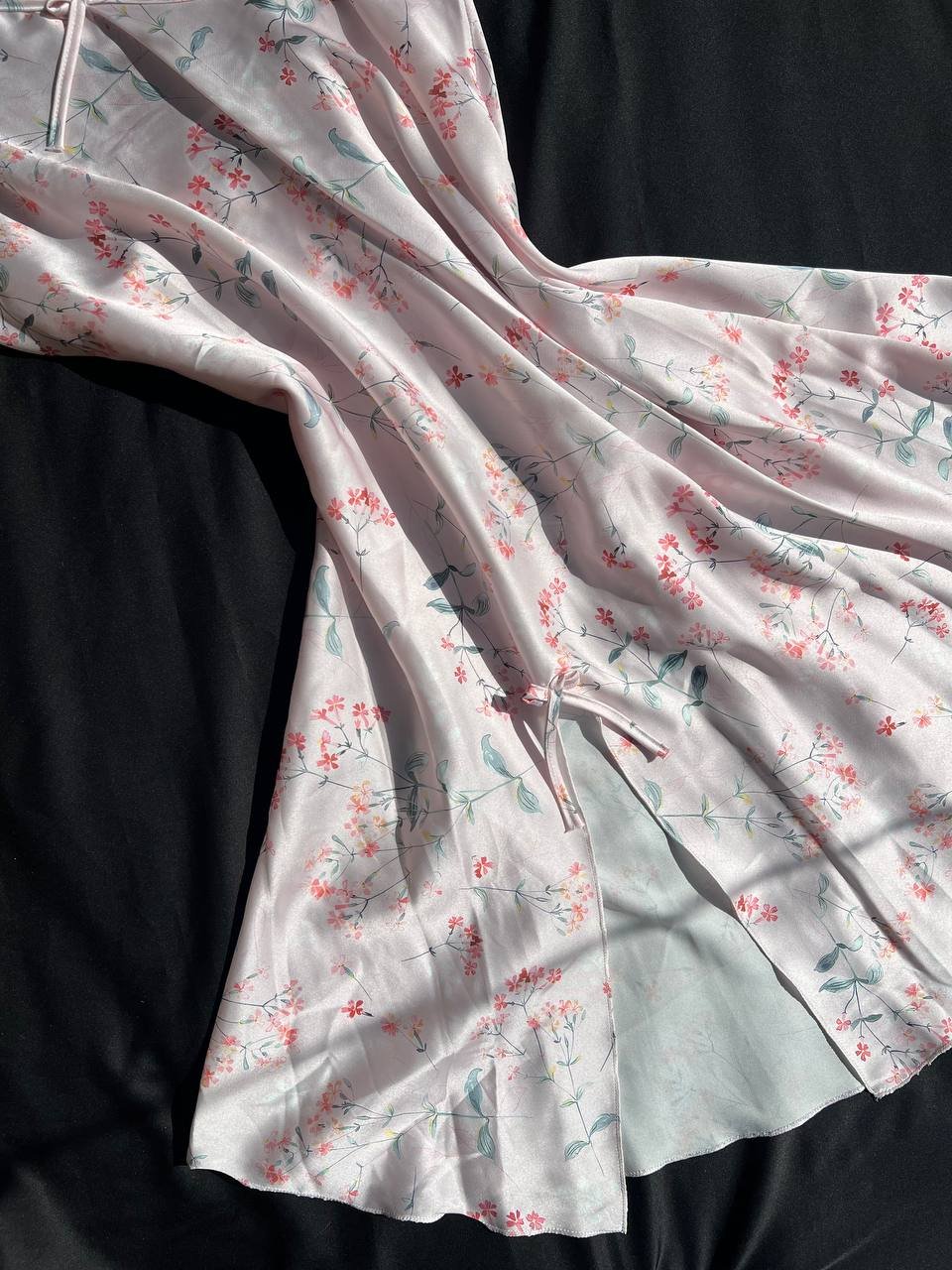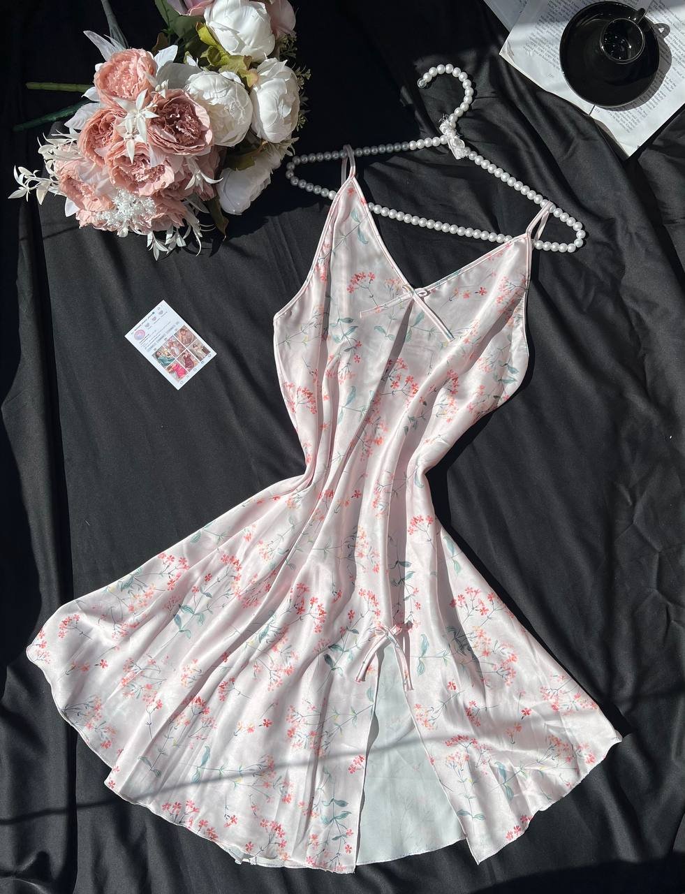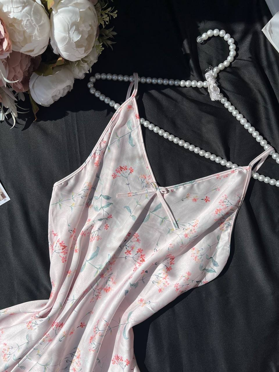 موديل أنيق بخامة ستان ناعمة تعطي لمسة فخامة وأنوثة مميزة. التصميم مريح وخفيف في اللبس ومناسب للبيت و الاجواء الصيفيه، مع إحساس بالنعومة والراحة على البشرة.