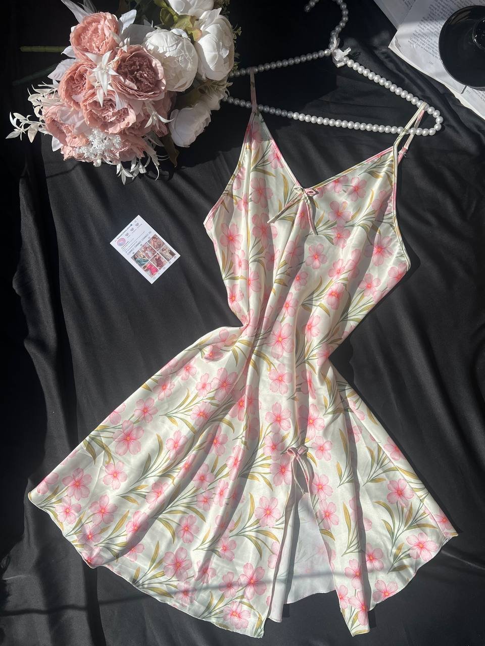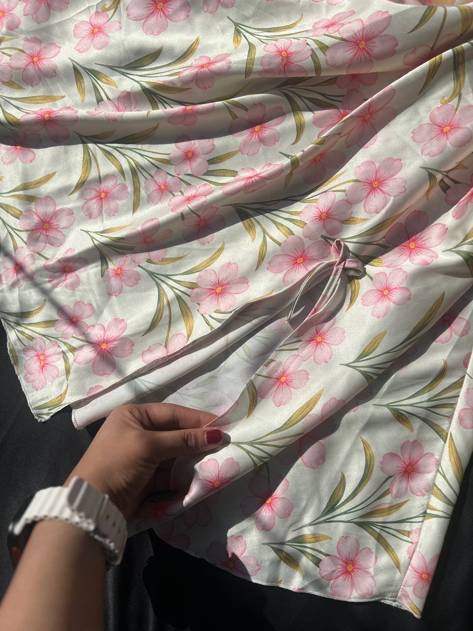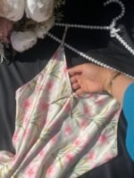 موديل أنيق بخامة ستان ناعمة تعطي لمسة فخامة وأنوثة مميزة. التصميم مريح وخفيف في اللبس ومناسب للبيت و الاجواء الصيفيه، مع إحساس بالنعومة والراحة على البشرة.