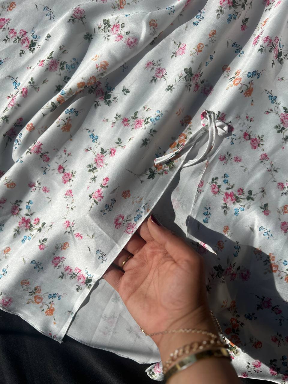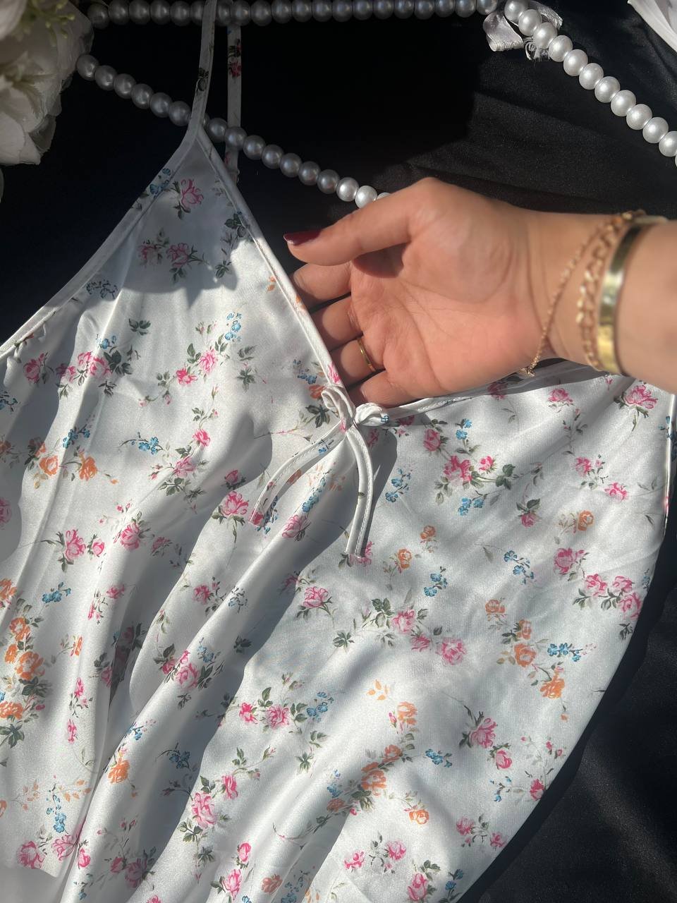 موديل أنيق بخامة ستان ناعمة تعطي لمسة فخامة وأنوثة مميزة. التصميم مريح وخفيف في اللبس ومناسب للبيت و الاجواء الصيفيه، مع إحساس بالنعومة والراحة على البشرة.