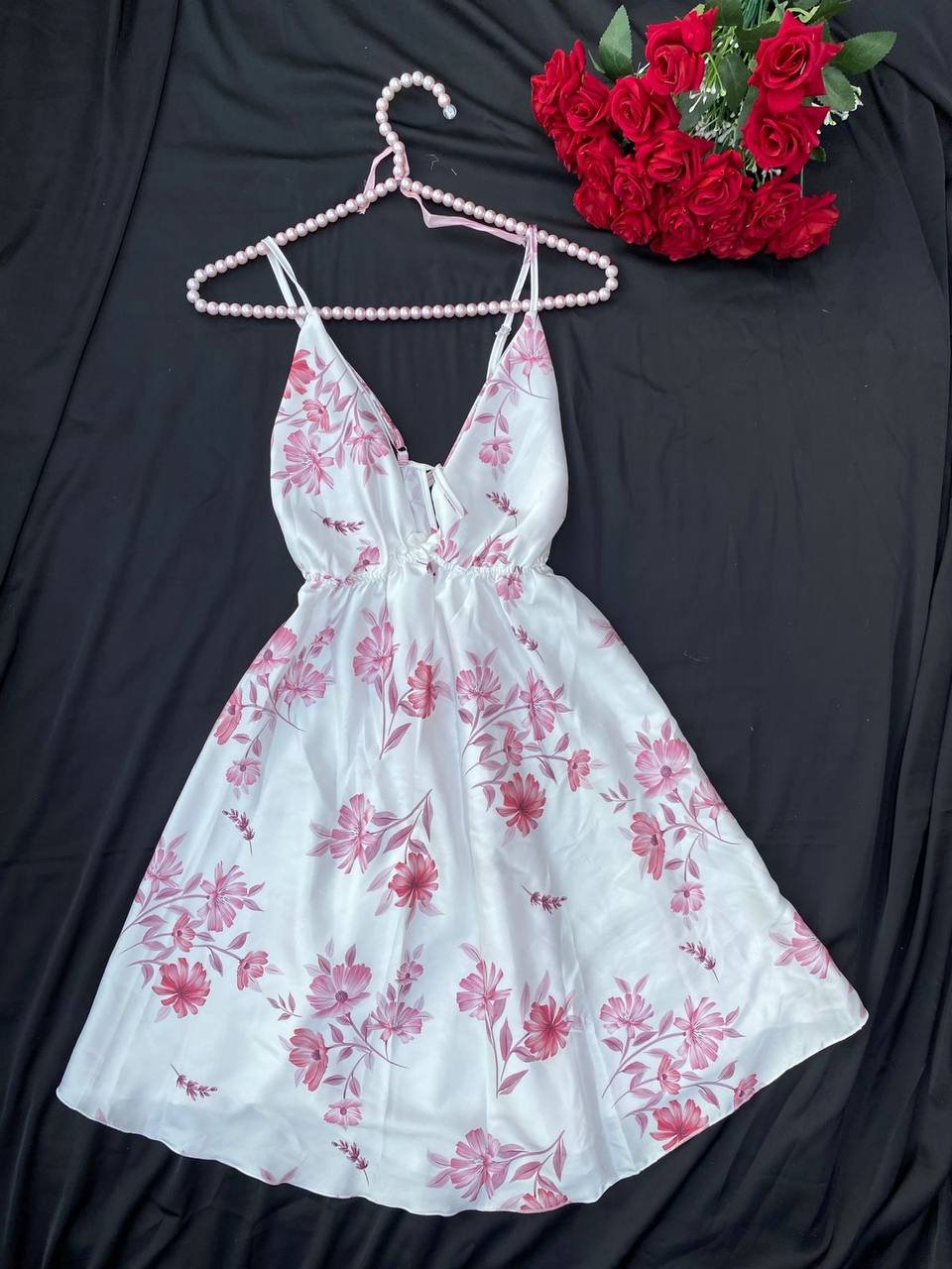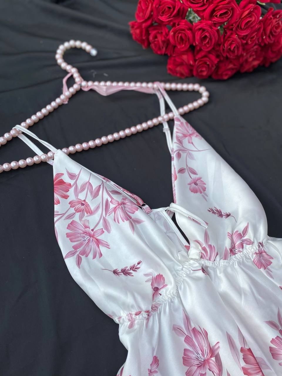 موديل أنيق بخامة ستان ناعمة تعطي لمسة فخامة وأنوثة مميزة. التصميم مريح وخفيف في اللبس ومناسب للبيت و الاجواء الصيفيه، مع إحساس بالنعومة والراحة على البشرة.