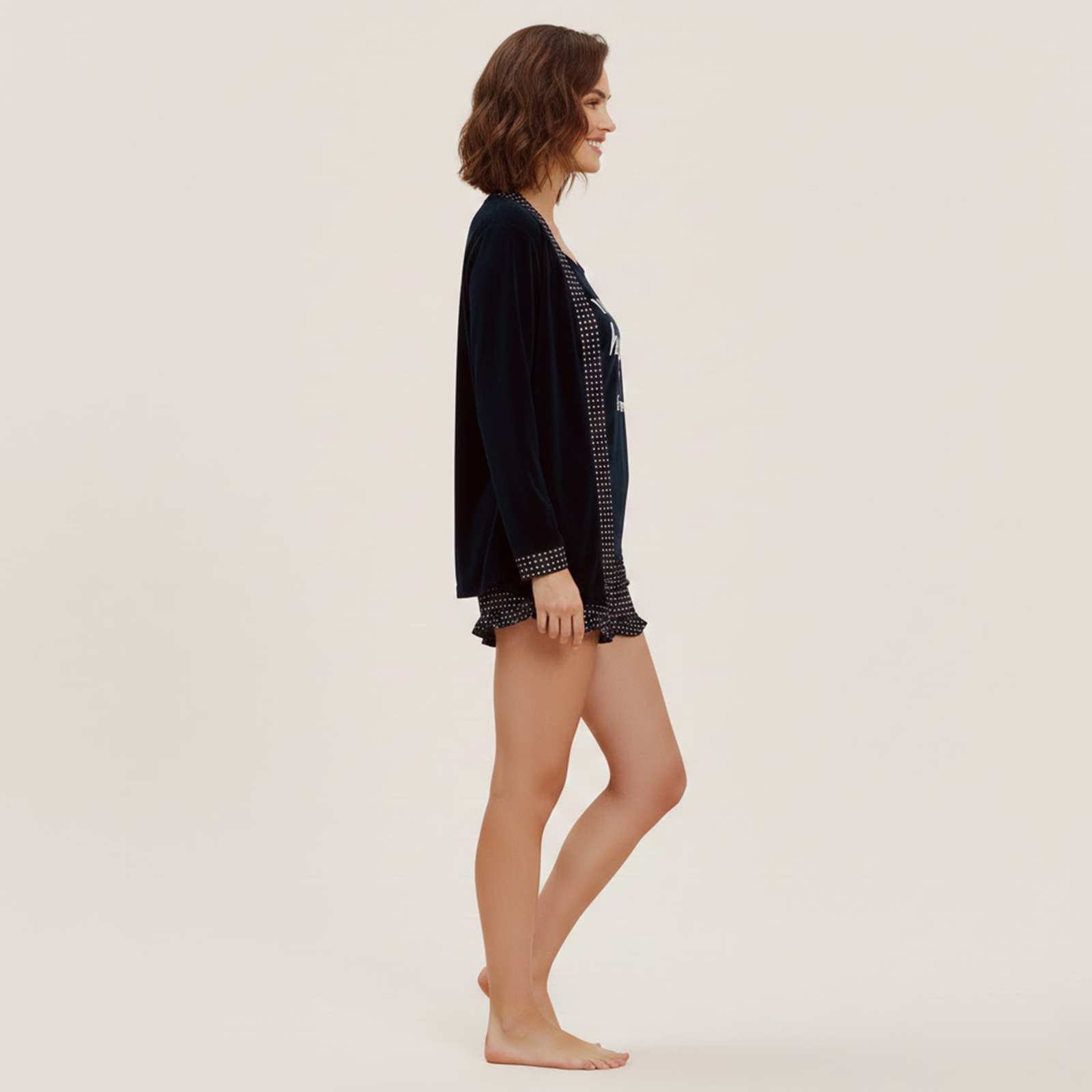 بيجامه قطعتين توب بولار بزونط وبنطلون قطيفة مبطن