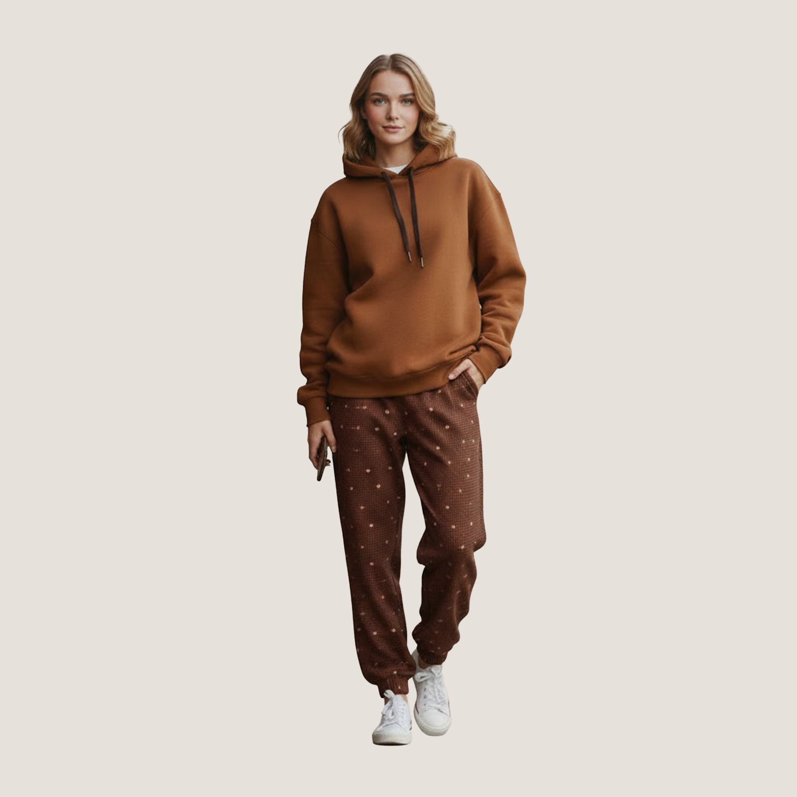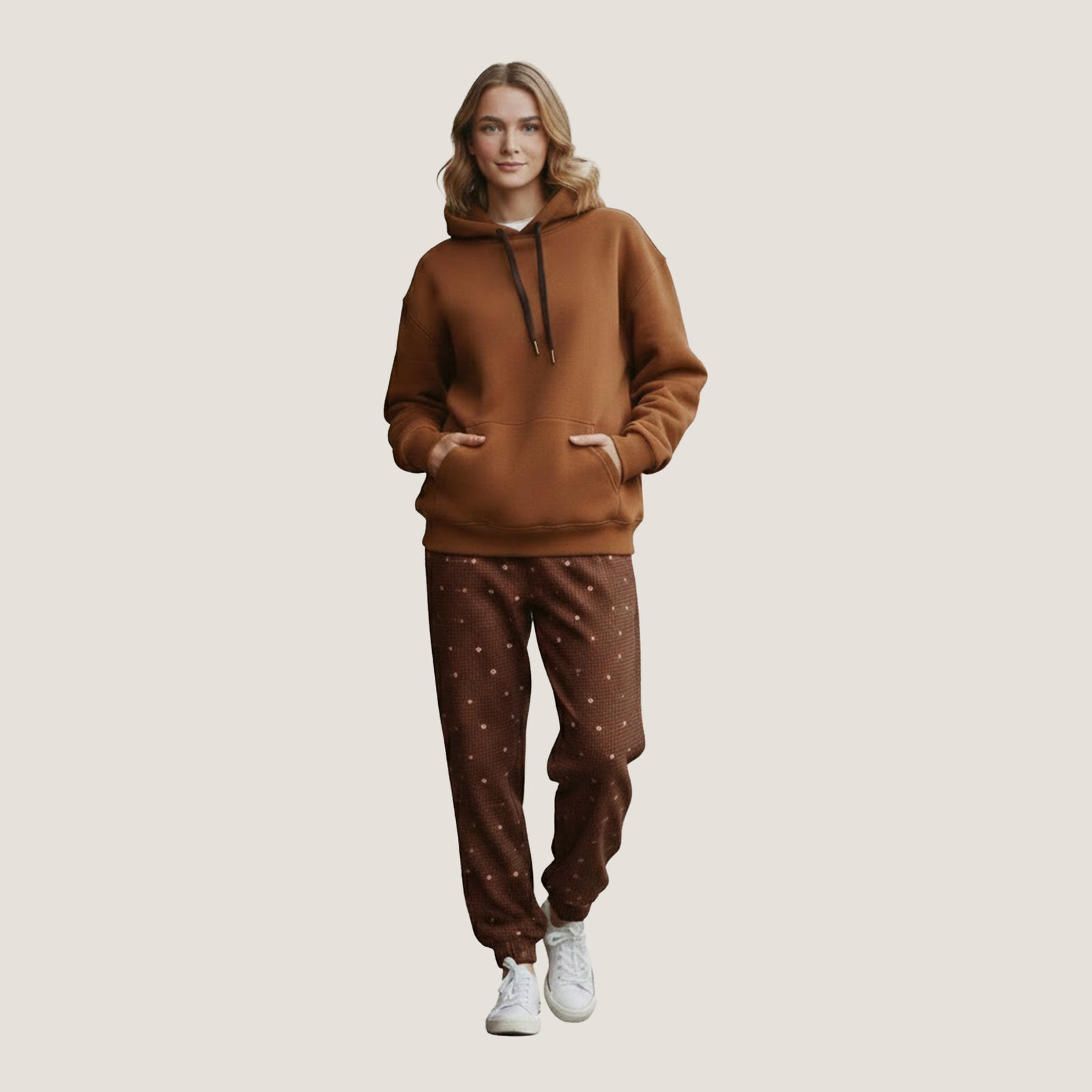 بيجامه قطعتين توب بولار بزونط وبنطلون قطيفة مبطن