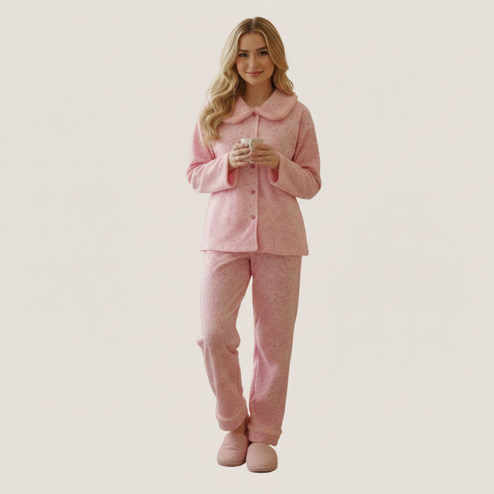 بيجامه قطعتين توب بولار بزونط وبنطلون قطيفة مبطن