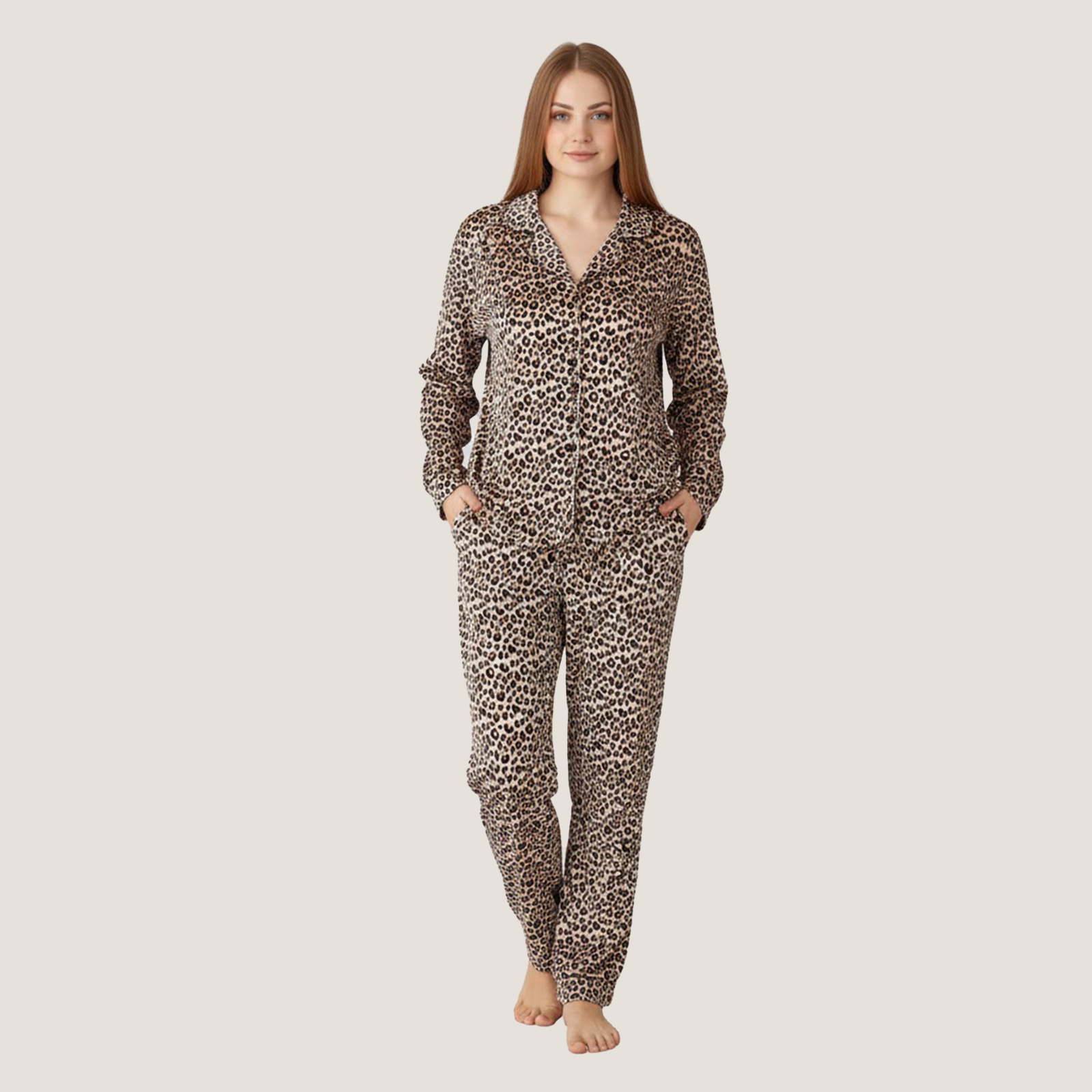 بيجامه قطعتين زراير كم طويل