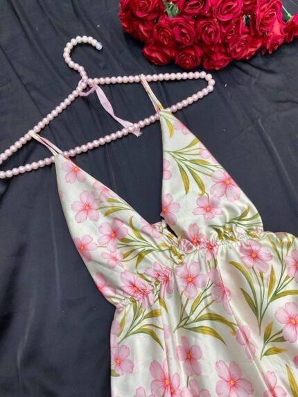 موديل أنيق بخامة ستان ناعمة تعطي لمسة فخامة وأنوثة مميزة. التصميم مريح وخفيف في اللبس ومناسب للبيت و الاجواء الصيفيه، مع إحساس بالنعومة والراحة على البشرة.